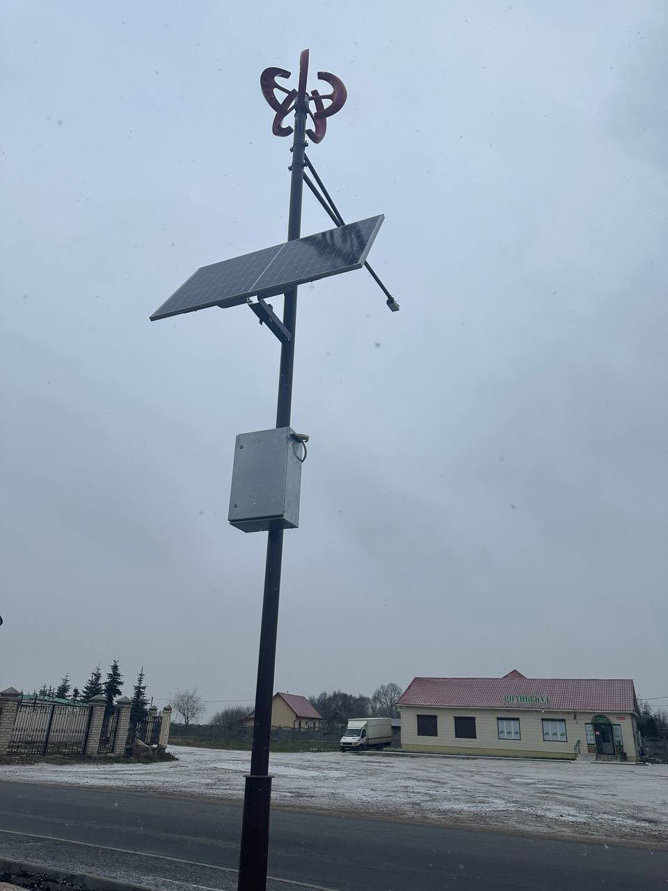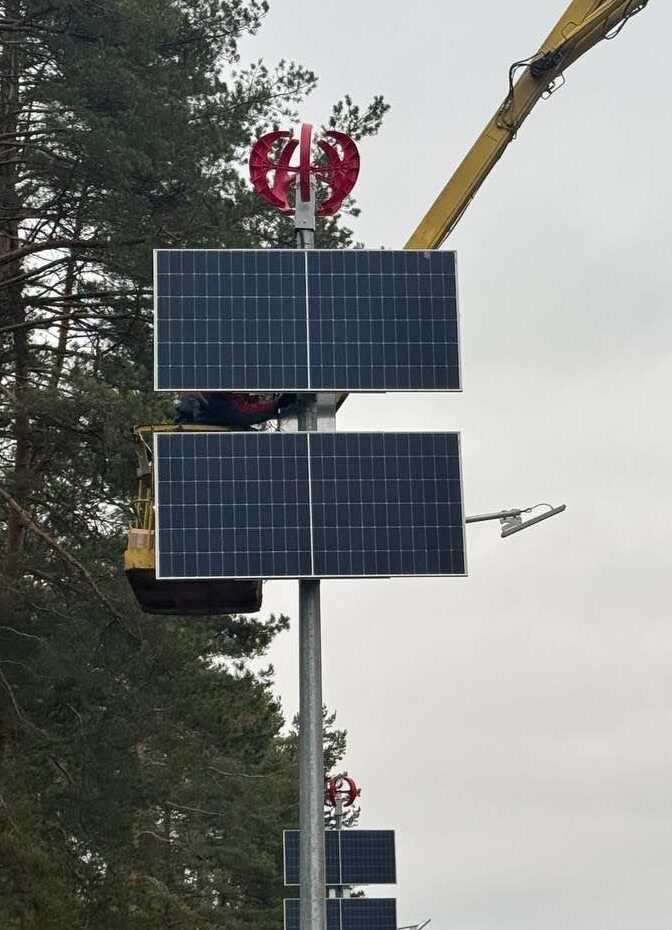 - Монтаж светильника и электростанции на выбранной опоре.