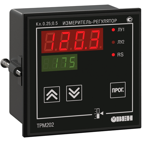 Двухканальный регулятор с универсальным входом и RS-485 Owen ТРМ202-Щ1-ТТ — двухканальный регулятор с универсальным входом и интерфейсом RS-485. Прибор предназначен для измерения и автоматического регулирования температуры (при использовании в качестве датчиков ТС или ТП), а также других физических параметров, значения которых могут быть преобразованы датчиками в унифицированный сигнал постоянного тока или напряжения. Измеритель соответствует ГОСТ Р 52931–2008 и относится к изделиям государственной системы промышленных приборов и средств автоматизации. Прибор зарегистрирован в Государственном реестре средств измерений.